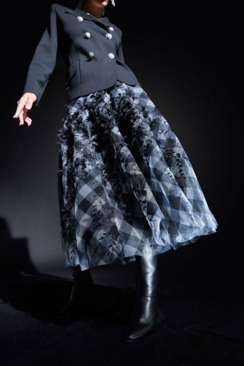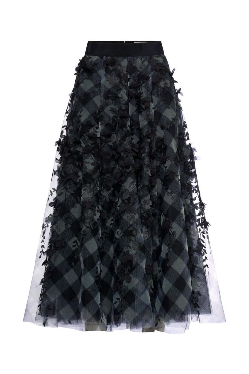Skirt Tulle Check Embroidery