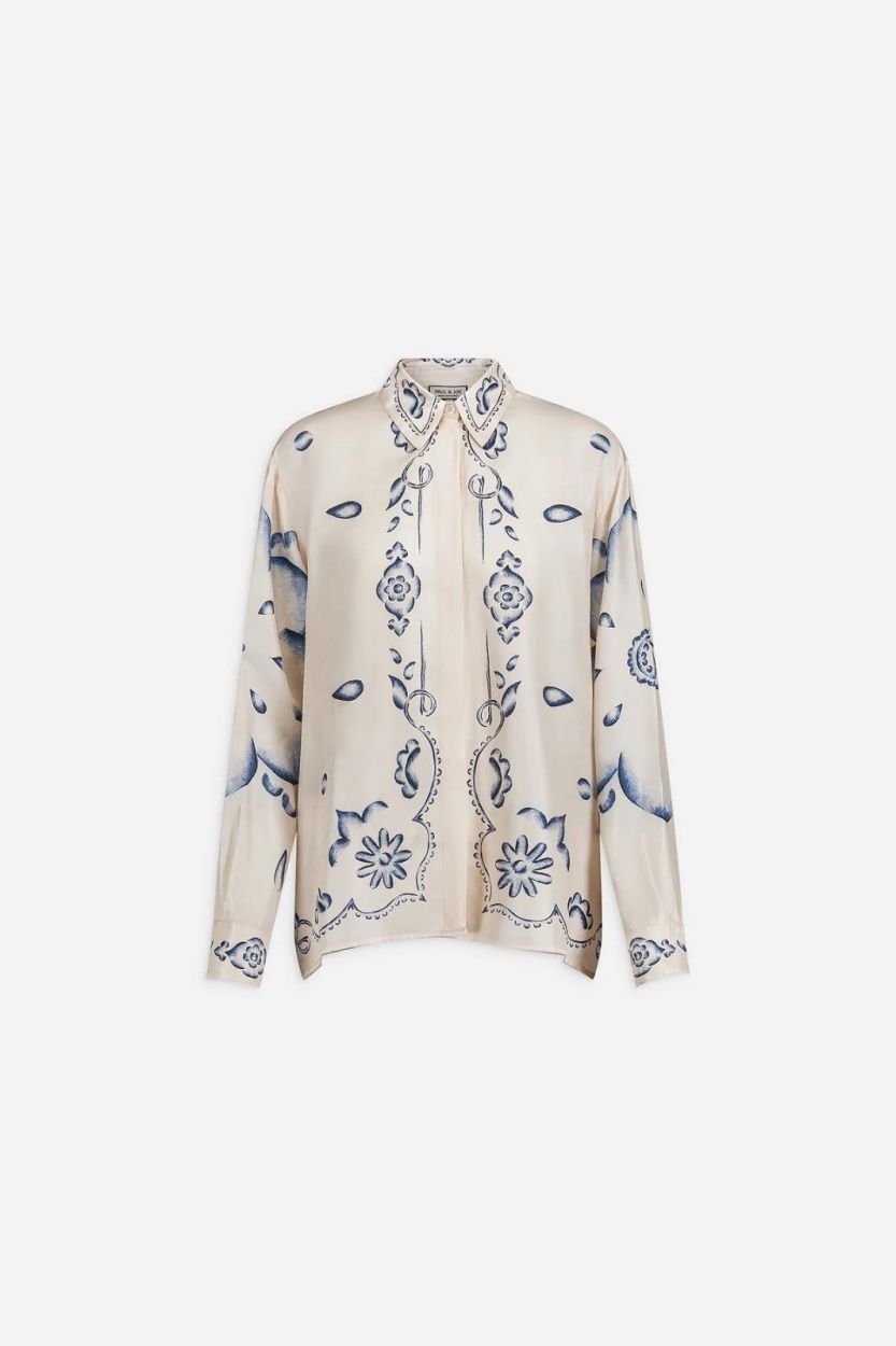 Blouse Silk Blue Flower